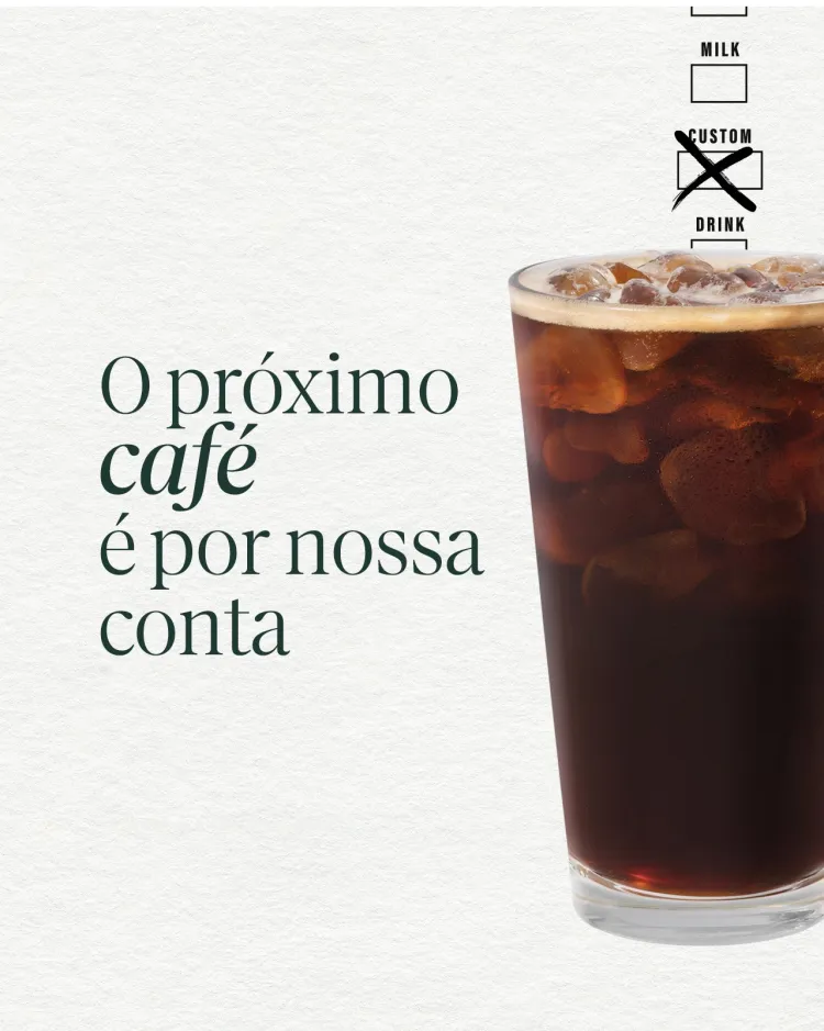 Promoção exclusiva para membros da Starbucks Rewards, disponível unicamente nas lojas com Starbucks Rewards. Esta promoção é aplicável também para os pedidos antecipados (Mobile Order and Pay) nas lojas com esta funcionalidade.