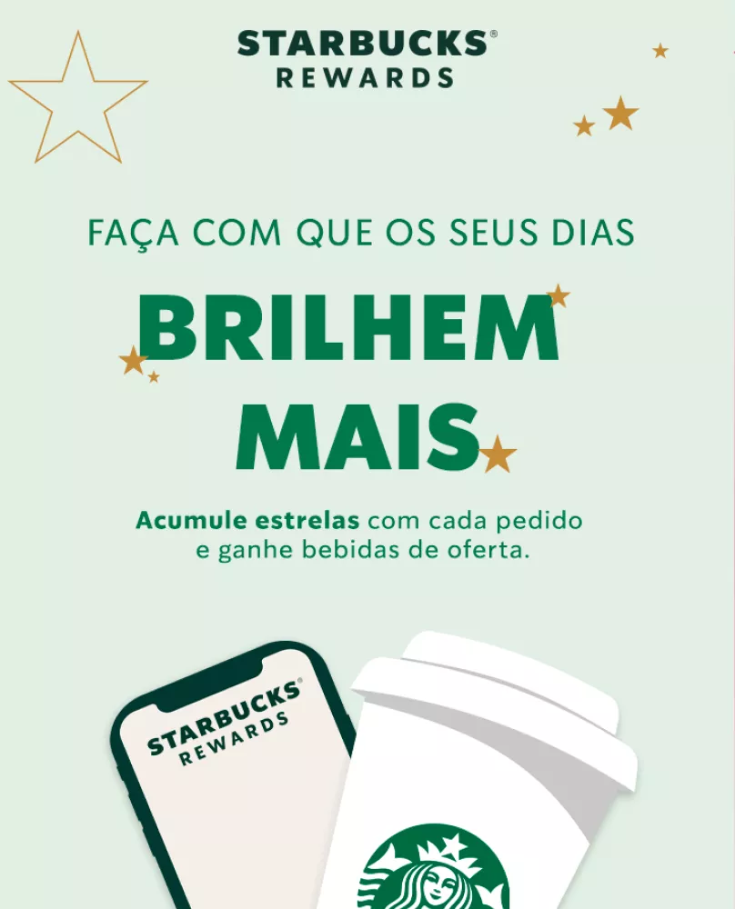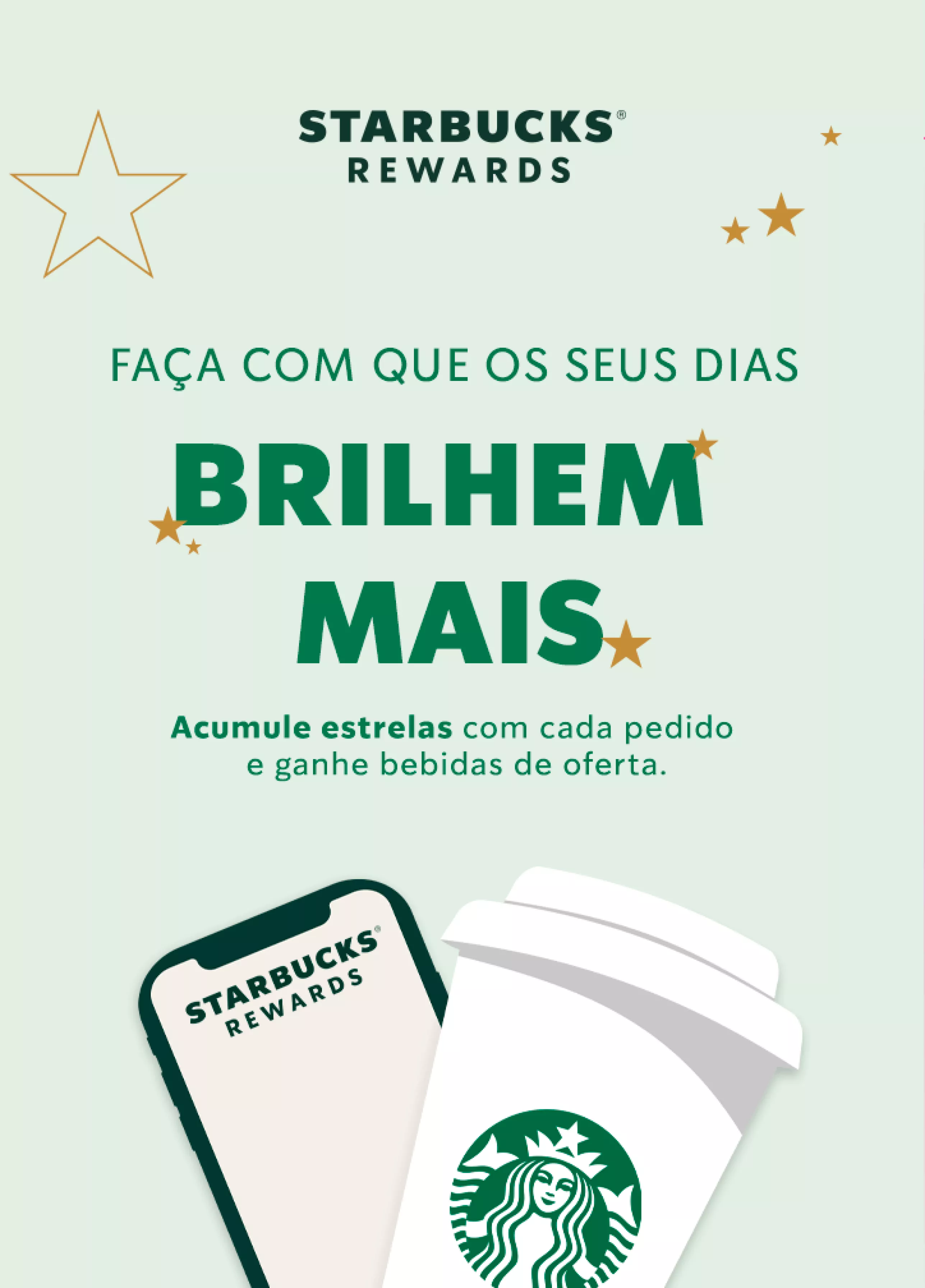 Acumule 3.000 estrelas para conseguir a sua bebida favorita de oferta. Faça com que os seus dias brilhem mais!